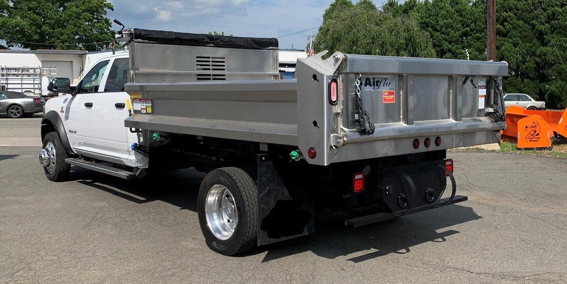 The Air-Flo Pro-Class body’s horizontal lines and gussets have smooth rounded corners for a classy modern appearance. Sides are constructed of (2) sheets of 10 ga. Steel for unsurpassed strength and durability. The double wall sides form a fully boxed top rail and include a 45-degree sloped, dirt shedding sub rails. The 94” wide body is fully welded and made of 10 ga. Single wall steel. The single handle tailgate latching system makes tailgate operation simple, safe, and easy. The understructure is built with 3” structural steel channel spaced every 12” and supported by 5” structural channel longitudinals. The high lift capacity scissor hoist with factory installed body prop comes standard with the Pro-Class body. Its advanced designed scissor hoist provides unmatched load lifting power with load dumping stability. The entire floor is supported by 3” structural channel cross members on 12” centers.